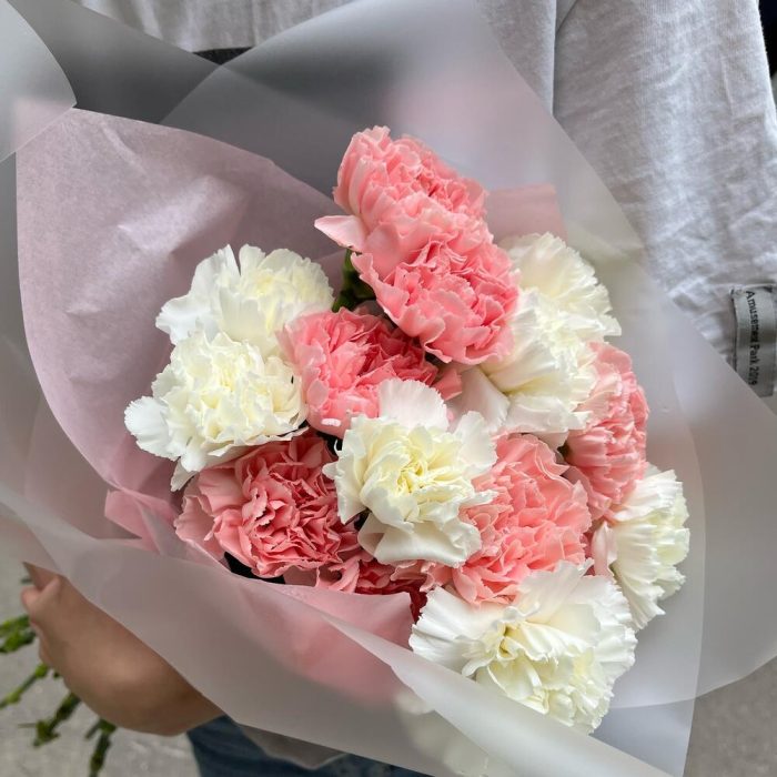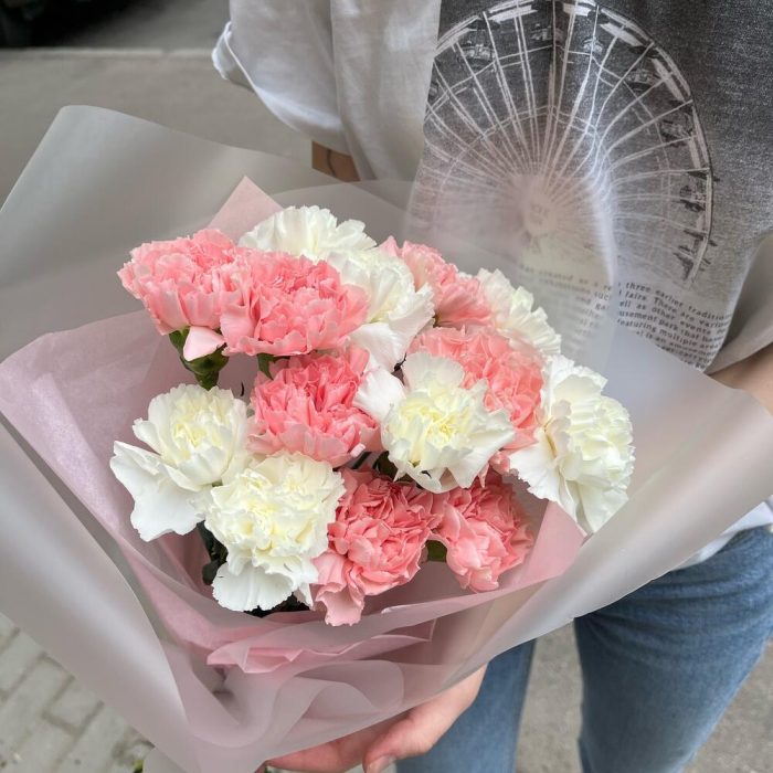 Монобукет с розовыми и белыми диантусами