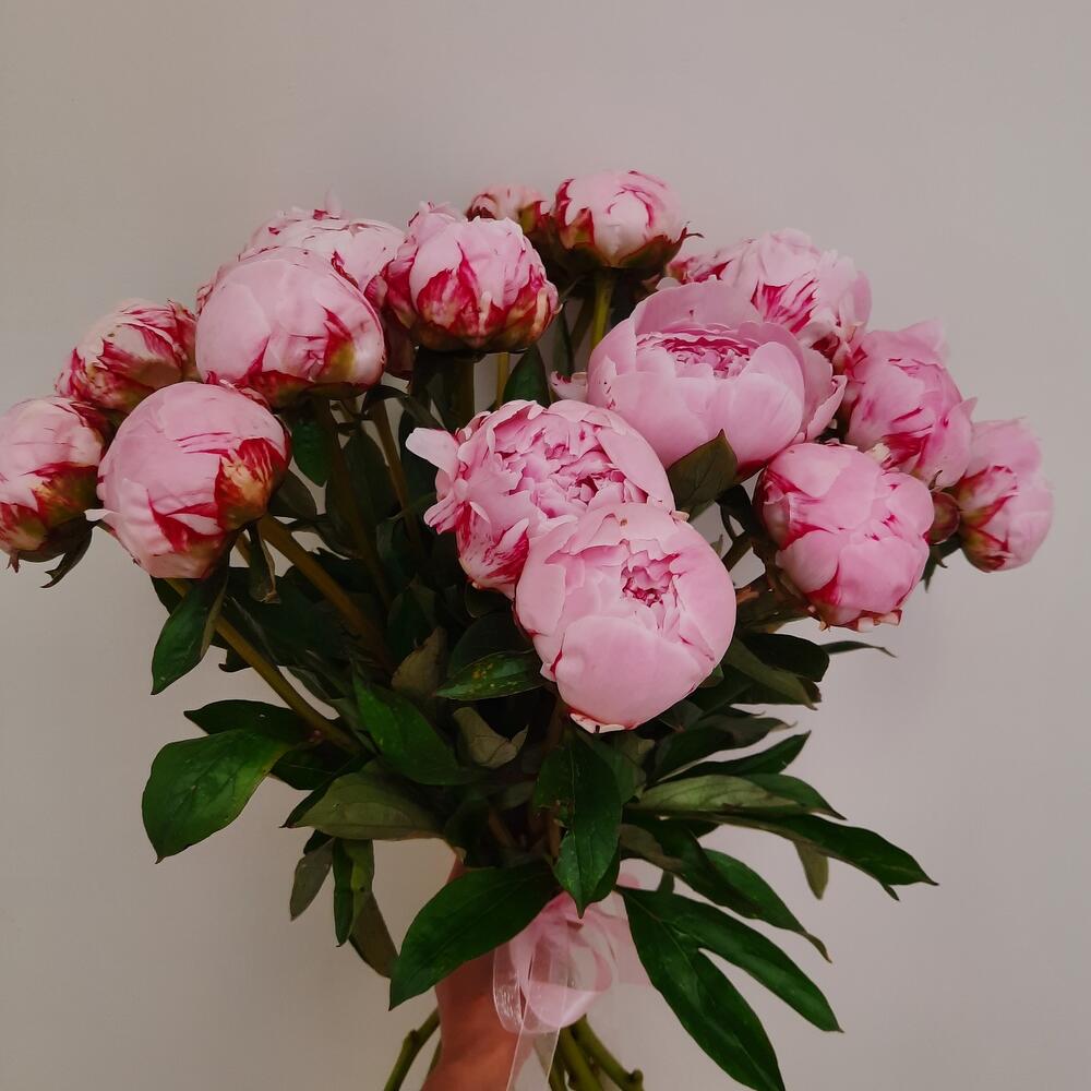 Пион Сара Бернар – 21 шт.Лента атласная – 1 шт.