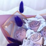 «Лавандовое созвездие» Букет из розы, гвоздики, статица и хлопка